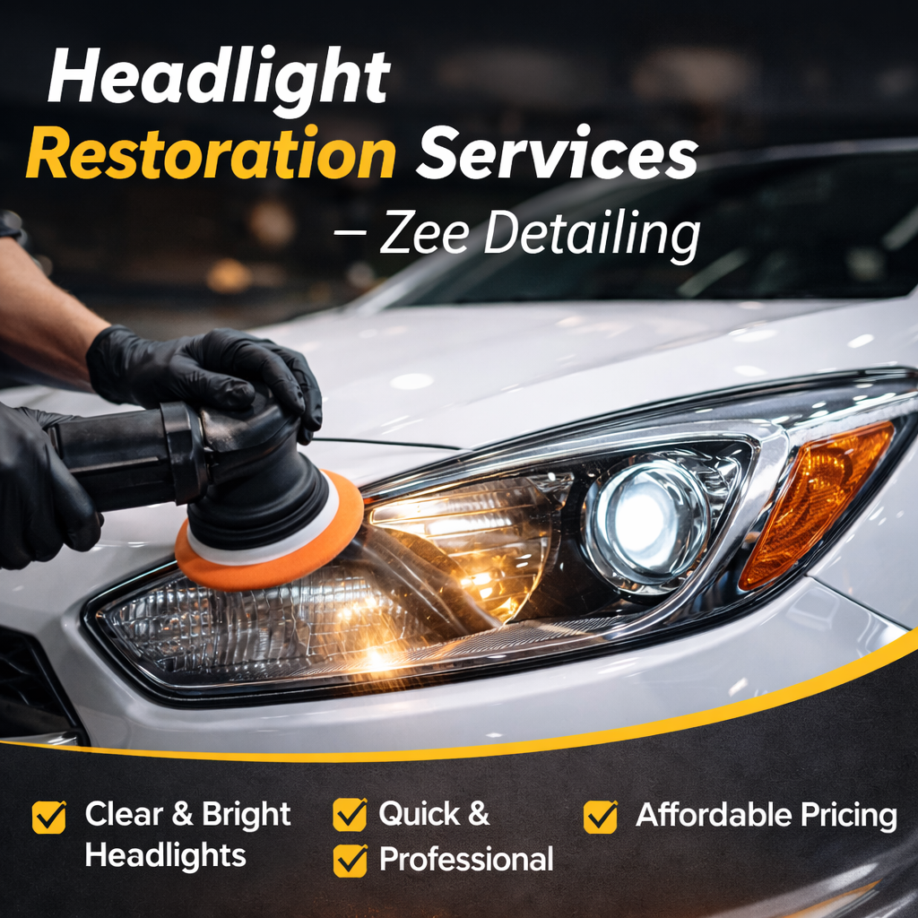 When your vehicle’s headlights look dull, yellowed, or scratched, it affects both appearance and safety. Zee Detailing provides professional headlight restoration services, ensuring your headlights are clear, bright, and safe for nighttime driving. Key Feature: What Headlight Restoration Involves Headlight restoration is more than just cleaning. It requires specialized equipment, high-quality polishing compounds, and trained […]
